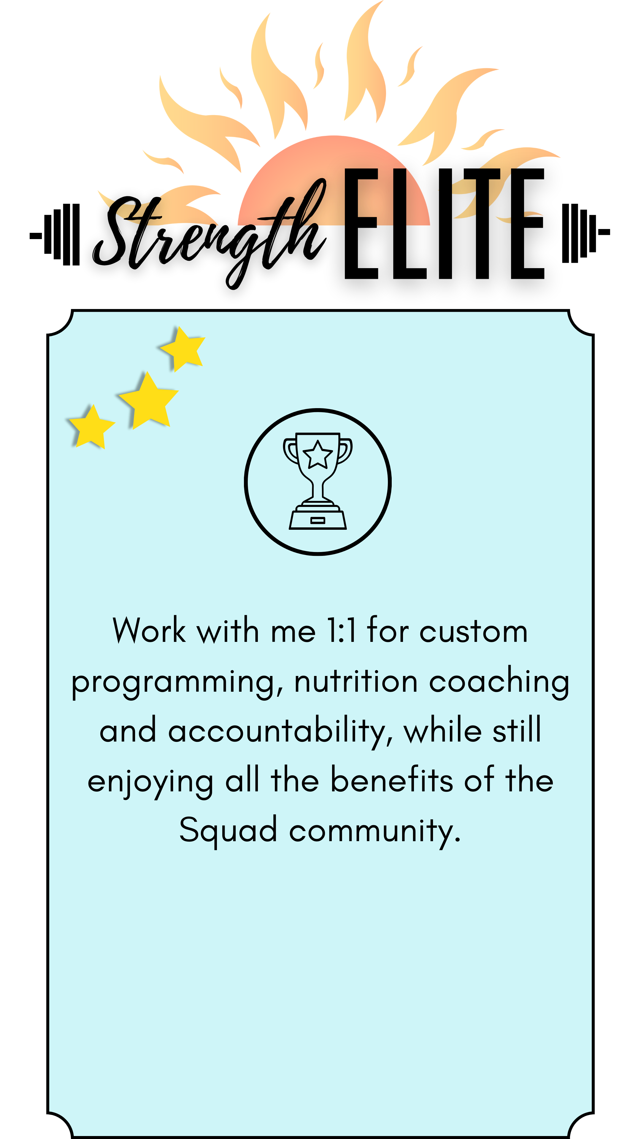 Surround yourself with most amazing community of strong women, get access to endless expertly designed programs and nutrition guidance, and receive weekly semi-personalized coaching.