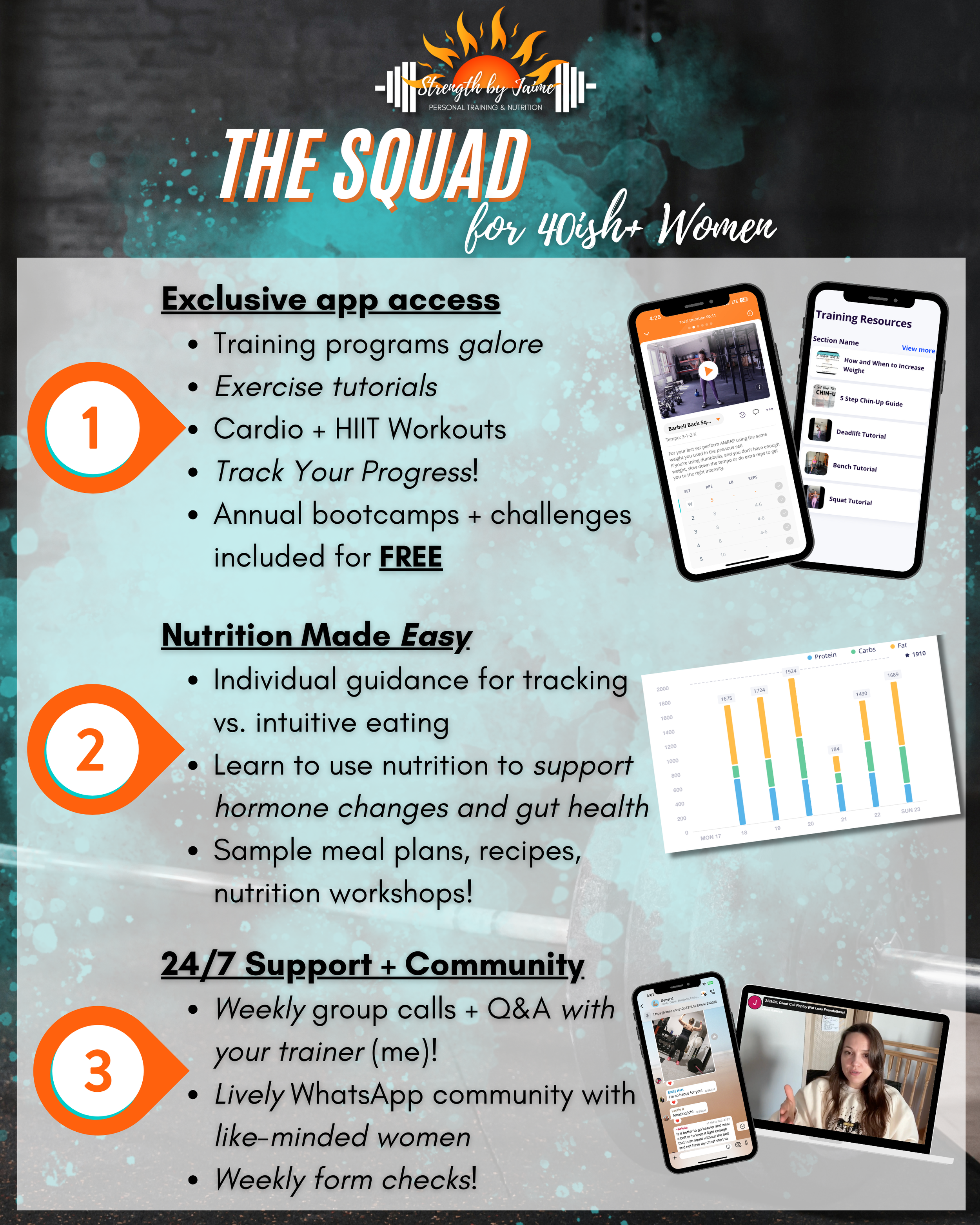 Forget overpriced, generic coaching that doesn’t deliver... The Squad gives you expert training, nutrition, and community for a fraction of the cost.